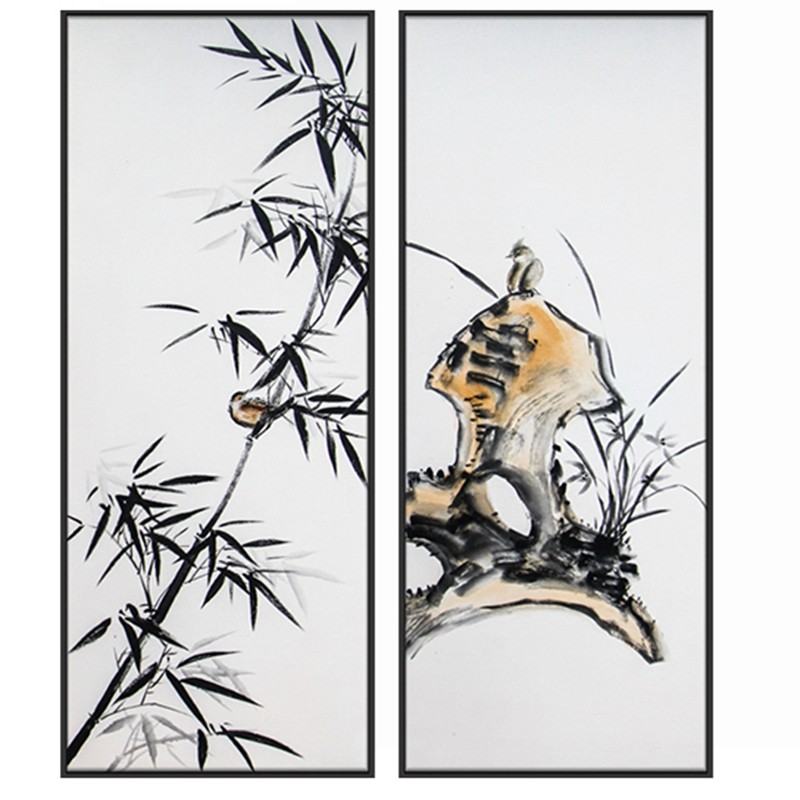 新中式客廳裝飾畫臥室原創(chuàng)手繪寓意畫餐廳環(huán)保PS框原創(chuàng)畫 竹與鳥